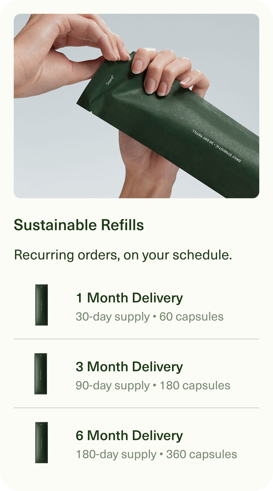 Yes. We believe that probiotics and prebiotics, alongside diet, nutrition, exercise, and lifestyle, are cornerstone tools to building foundational health. Clinical research shows that continuous, daily intake is the best way to get the most out of your synbiotic. By signing up for a subscription, you’ll easily be able to build DS-01® into your routine.